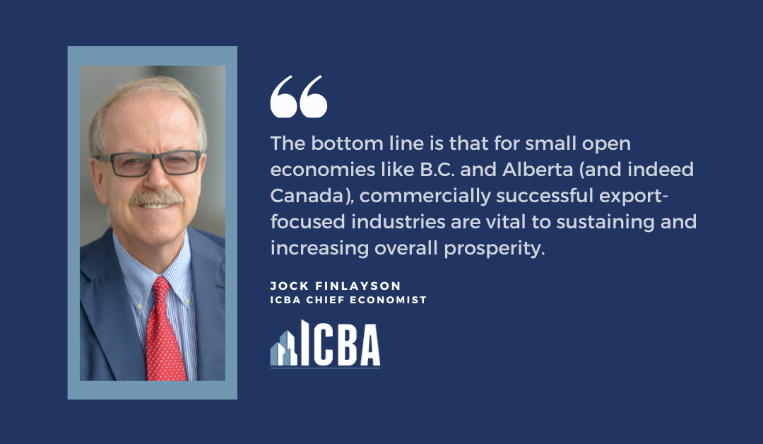 The bottom line is that for small open economies like B.C. and Alberta (and indeed Canada), commercially successful export-focused industries are vital to sustaining and increasing overall prosperity.